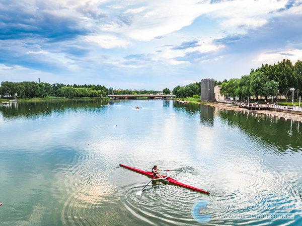 夏日傍晚,河南省鄭州龍子湖宛如碧玉,賽艇運(yùn)動員在湖中訓(xùn)練,水清岸綠、人水和諧,構(gòu)成一幅景美人和的幸福畫卷。