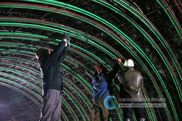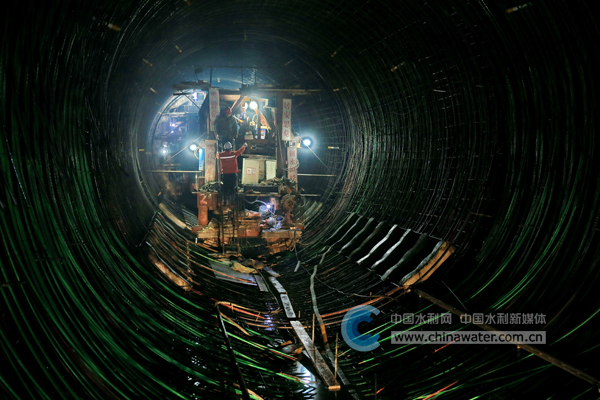 鋼筋安裝及連接焊接、預(yù)應(yīng)力鋼絞線環(huán)繞綁扎、混凝土澆筑……一道道工序有序進(jìn)行。整個(gè)隧洞在地表平均200米以下,長(zhǎng)年溫度10攝氏度左右,為了如期完工通水的目標(biāo),工人們?nèi)昃o張有序開展各項(xiàng)施工作業(yè)。