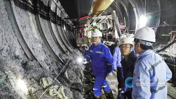 高玉生(左一)帶領(lǐng)現(xiàn)場地質(zhì)人員在查勘隧洞內(nèi)的地質(zhì)條件 中水北方勘測設(shè)計研究有限公司提供