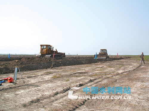 胖頭泡蓄滯洪區(qū)碾壓施工現(xiàn)場
