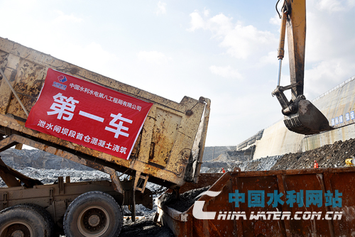 大藤峽工程左岸泄水閘第一車混凝土入倉(高毅 楊璐/攝)