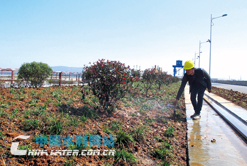 登上南水北調(diào)中線丹江口大壩壩頂放眼遠(yuǎn)望,上游碧波萬頃,下游奔流不息。高低錯(cuò)落之間,大壩壩面上正悄然發(fā)生著變化:栽種著各種綠色植物的環(huán)形綠化帶在壩面延展開來,與碧水藍(lán)天交相輝映,形成一道獨(dú)特的風(fēng)景。漢江集團(tuán)公司、南水北調(diào)中線水源公司在大壩加高工程基本完建后,履行樞紐管理職能,以建設(shè)美麗壩區(qū)、展現(xiàn)工程文明形象為目標(biāo),著力構(gòu)造水源地生態(tài)屏障,打造水源地城市“綠色名片”。