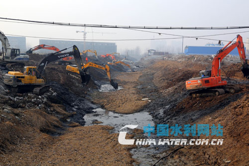 中國水利網(wǎng)站225日訊(記者 范智224上午,在安徽省阜陽市潁泉區(qū)循環(huán)經(jīng)濟園區(qū)潘寨社區(qū)S202道路東側(cè),20多臺挖掘機正在魏公橋兩側(cè)熱火朝天地進行伍明溝下段疏浚作業(yè)!斑@條溝疏浚后,河道變寬,水質(zhì)變好,咱家旁邊又要多一景”。說起清溝這件事,站在現(xiàn)場觀看的 潘寨村村民潘之虎臉上洋溢著喜悅的笑容。