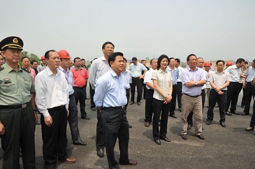 中國水利網(wǎng)站訊 4月27日,廣東省委副書記、省長黃華華與副省長劉昆、省軍區(qū)司令員劉聯(lián)華少將以及廣州、佛山、肇慶、清遠和省直有關(guān)部門負責同志一道來到北江大堤和肇慶景豐聯(lián)圍,實地檢查北江大堤和景豐聯(lián)圍的防汛備汛工作。這是2003年以來,黃華華省長連續(xù)9年到北江大堤考察防汛備汛工作。省防總副總指揮、水利廳廳長黃柏青,省防總秘書長、水利廳副廳長邱德華參加了檢查工作。