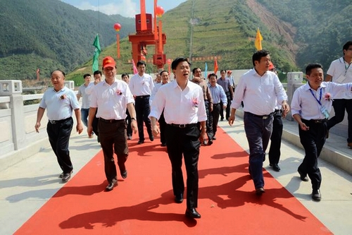 黃華華指出,樂昌峽水利樞紐是北江最重要的水利工程之一,事關(guān)整個北江流域的防汛大局。3年前,為從根本上解除北江流域洪澇災(zāi)害威脅,省委、省政府作出了興建樂昌峽水利樞紐的重大決策,并把它作為全省重點建設(shè)項目加快推進。工程開工以來,水利部等國家部委及廣鐵集團等有關(guān)單位給予了大力支持和指導(dǎo),省直各有關(guān)部門和韶關(guān)市通力協(xié)作、密切配合,特別是廣大工程建設(shè)者戰(zhàn)嚴(yán)寒、斗酷暑,用智慧和汗水,精心澆筑出一座質(zhì)量優(yōu)良、外觀壯美的大壩,向全省人民交出了一份滿意的答卷。