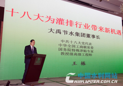 在20日上午舉行的“2012中國灌排行業(yè)發(fā)展戰(zhàn)略研討會”上,王棟作題為《十八大后灌排行業(yè)發(fā)展新機(jī)遇》的報告,解讀了十八大關(guān)于節(jié)水灌溉行業(yè)的相關(guān)政策以及給灌排行業(yè)帶來的機(jī)遇,表達(dá)了大禹節(jié)水集團(tuán)將抓住機(jī)遇,引領(lǐng)節(jié)水灌溉行業(yè)創(chuàng)新發(fā)展的堅定信念。