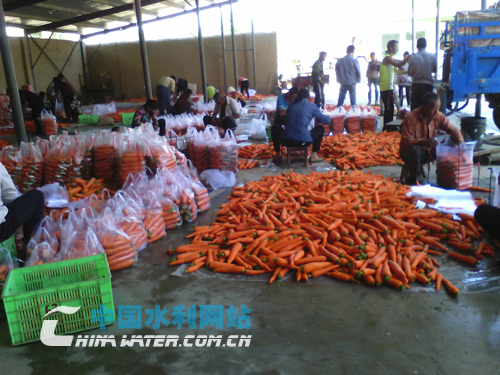 在該村隔壁的太石鎮(zhèn)水泉村,筆者看到大大小小的蔬菜購銷點里前來出售蔬菜和拉運蔬菜的客商絡(luò)繹不絕,涼棚里堆滿了紅彤彤的胡蘿卜,一旁打好包裝的胡蘿卜、馬鈴薯、綠蘿卜整整齊齊的碼放著,等待客商裝車外運。正在給胡蘿卜裝包的張大爺說:“村里的群眾現(xiàn)在家家種植了經(jīng)濟(jì)作物,就是靠了方便的澆灌和通暢的渠道,現(xiàn)在全村的群眾一年四季都在種植蔬菜,經(jīng)濟(jì)收入也很可觀!