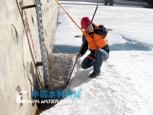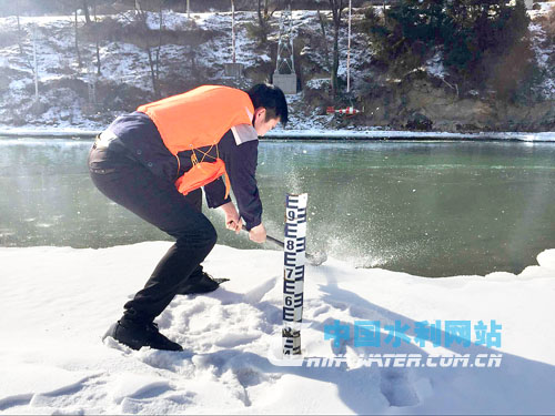甘肅天堂水文站職工在新春第一天敲冰測流    馮彥民/攝