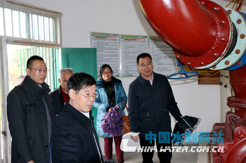 圖為驗收組在北溪村高效節(jié)水灌溉工程水泵房內(nèi)檢查