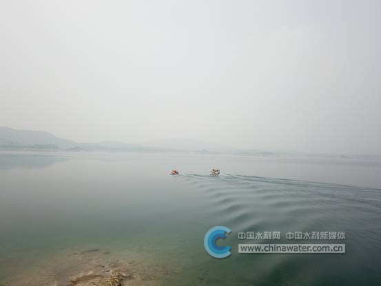 王快水庫水面面積大約40平方公里,巡查一遍大約耗時3小時。圖為巡查隊員分乘兩條船向庫區(qū)深處進發(fā)。