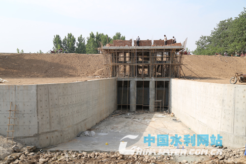 柳屯閘除險加固主體完工,正在建設啟閉機房(6月3日)