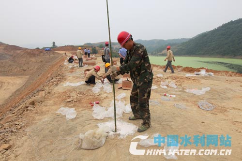 這里與湖北鄖縣交界,地處偏僻山區(qū),道路崎嶇難行,水庫隱身在深山峽谷之中,遠(yuǎn)離人家。在30多米高的壩頂上,記者看見爆破人員正在忙著裝炸藥,方圓百米已被戒嚴(yán),禁止通行。負(fù)責(zé)實施爆破的李經(jīng)理告訴記者,他們從6月1日進(jìn)駐爆破現(xiàn)場,已完成150個炮眼,投入4噸炸藥,于下午兩點多鐘可進(jìn)行爆破。