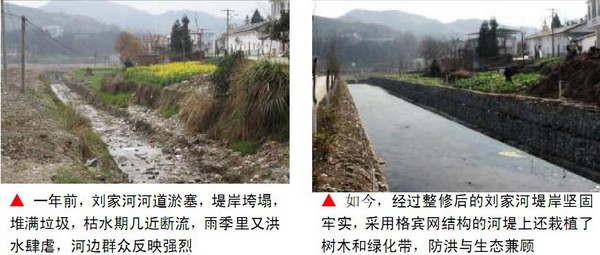 前進(jìn)村劉家河河堤在2010年“7.18”大水中水毀嚴(yán)重,兩岸農(nóng)田汛期時(shí)遭遇洪澇災(zāi)害。今年工作隊(duì)積極爭(zhēng)取全廳支持,投入300多萬(wàn)元,采用生態(tài)環(huán)保的格賓網(wǎng)結(jié)構(gòu)對(duì)水毀最嚴(yán)重的劉家河中段重點(diǎn)河段進(jìn)行了整治,既在一定程度上解決了防洪與抗旱需求,又在整體上改善了村莊環(huán)境。如今的劉家河,水清河暢、楊柳夾岸。生態(tài)河堤成為前進(jìn)村的一道最美麗風(fēng)景,成為村民們茶余飯后休閑的好去處。
