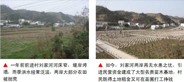 土地流轉(zhuǎn)是農(nóng)業(yè)現(xiàn)代化發(fā)展的必由之路。以前,前進(jìn)村委會(huì)門前劉家河畔的200畝農(nóng)田汛期經(jīng)常受淹,農(nóng)民收成得不到保障,大片農(nóng)田被拋荒。工作隊(duì)進(jìn)駐后,深入調(diào)研,科學(xué)論證,整體規(guī)劃,協(xié)助完成了土地流轉(zhuǎn),引進(jìn)民營(yíng)資金2000余萬(wàn)元,建成了竹溪縣名貴苗木花卉基地,村莊環(huán)境得到了極大改善,周邊群眾既可得土地租金,又能到苗圃打工掙錢,取得了經(jīng)濟(jì)利益和生態(tài)效益的雙贏。