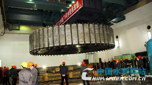 丹江口水電廠6號水輪機改造工程轉子回裝場面