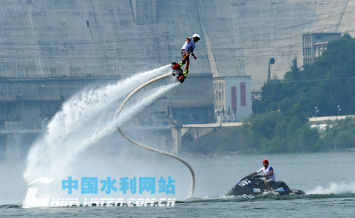 來自全國的14支摩托艇勁旅在美麗的丹江口大壩下游逐一登場,展開了一場場極具觀賞性、挑戰(zhàn)性的水上摩托艇巔峰對決。其中水上飛人花樣賽最為吸睛。人的剛性和水的柔力在百米高空,演繹出的是速度與激情的美妙融和,展現(xiàn)出的是一幅幅人水共舞精彩畫面,以下是記者在現(xiàn)場采集到的真實影像。