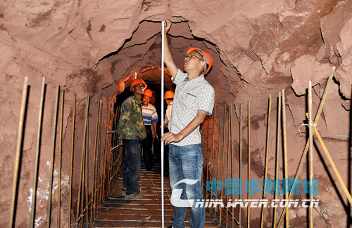 在實(shí)施水庫除險加固工程時,湖南沅陵縣采取定期巡查與不定期巡查相結(jié)合的方式,有效地遏制了偷工減料等不良現(xiàn)象的發(fā)生。圖為沅陵縣水利項目建設(shè)管理中心技術(shù)人員在偏遠(yuǎn)的二酉苗族鄉(xiāng)栗樹界水庫施工現(xiàn)場對隧洞開挖工序進(jìn)行驗收。(特約記者  凌長啟/攝)