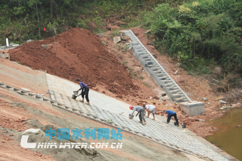 中國水利網(wǎng)站9月28日訊 (通訊員 舒序英 唐鐵林 陳俊宏)9月27日,筆者跟隨檢查組的工作人員來到湖南省麻陽縣2016年小農(nóng)水專項項目蘭村鄉(xiāng)項目區(qū)垅田村楠木溪山塘整治現(xiàn)場,看到一部分工人師傅們正在為鋪好的山塘六棱塊勾縫,另外一部分工人師傅們正在砌筑倒濾層,一派繁忙地景象。