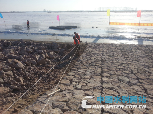 中國(guó)水利網(wǎng)站1月12日訊 (記者 邊境)隆冬三九、滴水成冰,吉林省松花江干流治理工程建設(shè)仍在如火如荼地進(jìn)行著。雖然項(xiàng)目在2015年度完成了年度建設(shè)計(jì)劃的111%,但為保證2016年5.9億元建設(shè)任務(wù)的順利完成,仍在利用冬季江面封凍有利條件,在全線6個(gè)標(biāo)段開展護(hù)岸工程石籠冰上沉排施工。