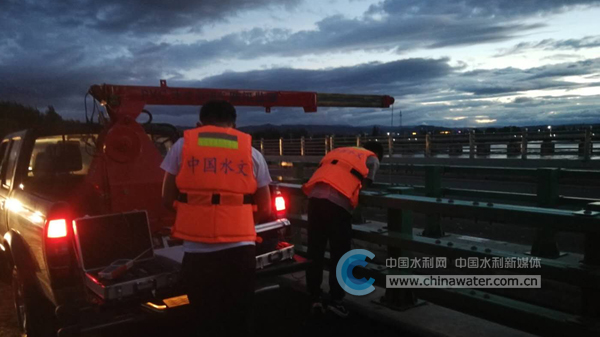 布爾哈通河支流海蘭河龍山水文站戴靖軒、李博正在測流