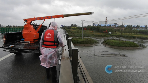 “注意速度,再降一點(diǎn),對(duì),好!8號(hào)一大早風(fēng)雨交加,吉林省四平勘測(cè)隊(duì)隊(duì)長(zhǎng)毛明偉帶著幾名隊(duì)員來(lái)到條子河四平水文站進(jìn)行測(cè)流工作。“海神”到來(lái),水文人的神經(jīng)都繃得緊緊的!霸诜琅_(tái)風(fēng)特殊時(shí)期,因?yàn)橥瓿梢淮,我們這個(gè)站負(fù)責(zé)的三個(gè)水文站的橋測(cè)工作,這三個(gè)站之間在路上的時(shí)間就得將近5個(gè)小時(shí),還需要根據(jù)水情的漲落規(guī)律持續(xù)作戰(zhàn),我必須帶領(lǐng)勘測(cè)隊(duì)員們和時(shí)間賽跑,‘轉(zhuǎn)戰(zhàn)東西’,準(zhǔn)確及時(shí)地將第一手?jǐn)?shù)據(jù)發(fā)送到出去!泵鱾フf(shuō)道。