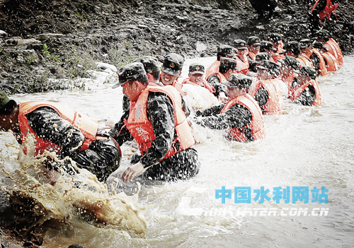 武警部隊(duì)?wèi)?zhàn)士進(jìn)行人工封堵決口演練(夏晶 攝)