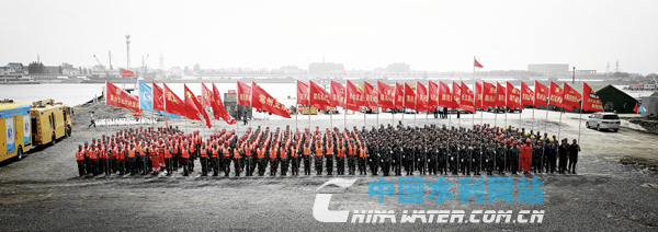 參加演練的21支專業(yè)防汛搶險(xiǎn)隊(duì)伍集結(jié)待命(夏晶 攝)
