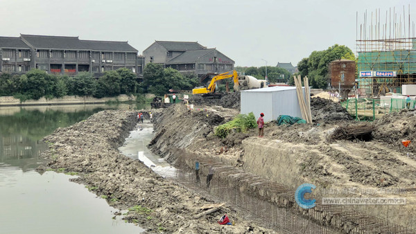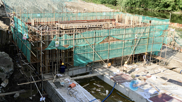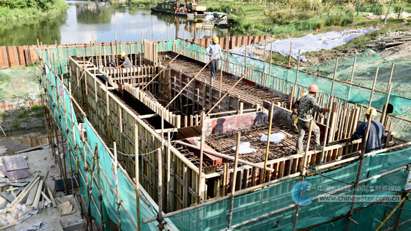 老通揚運河東部片區(qū)水生態(tài)治理工程調(diào)水泵站澆筑場景