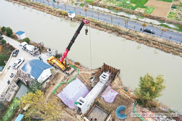 11月22日,在江蘇省淮安市洪澤區(qū)硯臨河楊碼四站擴建現(xiàn)場,施工人員正在抓緊施工。洪澤區(qū)計劃擴建排水泵站7座、新建排水泵站6座以及建設(shè)相關(guān)配套涵閘,項目從2022年開始實施,計劃三年全面完成,總投資約1.04億元。