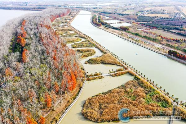 江蘇省淮安市洪澤區(qū)周橋水源地,泛紅的水杉林與清澈的水源相映襯,猶如一幅色彩艷麗的“杉”水畫。