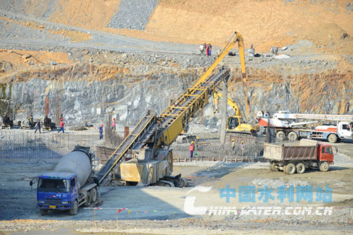 根據(jù)目前的施工進度,明年汛期到來前將完成低孔溢流壩護坦、右導(dǎo)墻,壩體混凝土澆筑至46.9米高程,右岸非溢流壩段澆筑至50.0米高程,左岸非溢流壩段澆筑至48.0米高程,廠房壩段完成檢修門及臨時門安裝,具備擋水條件。