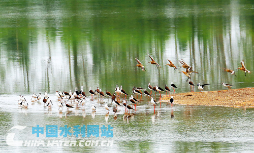 江西省永豐縣恩江河岸,一群群鳥兒在水中自由嬉戲、覓食。永豐縣近年來落實最嚴格水資源管理制度,著力保護水環(huán)境,呵護水生態(tài),恩江魚蝦數(shù)量增多,為水鳥提供了理想的棲息繁衍之地。