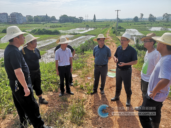 程龍(右二)、吳俊亮(右三)商討碗子圩險(xiǎn)情處置  操俊/攝