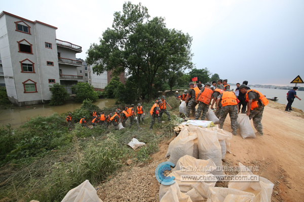 中午近1點(diǎn),程龍的盒飯還來不及扒一口,古南社區(qū)段因堤身貫穿性穿洞導(dǎo)致上游塌方,這地方前晚就出過險(xiǎn),正在處理過程中呢,因?yàn)樗畡萏珒疵屯蝗坏C,呈直徑約3米的大漩窩。大漩窩仿佛洪魔黑洞,一輛正在作業(yè)的后八輪大貨車掉了進(jìn)去,所幸現(xiàn)場指揮臨危不亂,就近調(diào)用一輛挖掘機(jī)和一輛鏟車,近兩小時操作,才將車拽了上來。與此同時,附近幾個村的人員、設(shè)備迅速集結(jié)到場投入戰(zhàn)斗,之后,從福建開拔過來的73123部隊(duì)100余名解放軍及鄱陽當(dāng)?shù)貛装倜癖糙s赴馳援,近20輛裝載車源源不斷將儲備的粘土運(yùn)送過去。一次又一次,人與機(jī)械合力,歷時4個多小時,終于將一顆巨胃填扎實(shí)了。