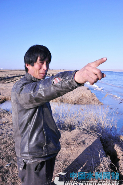 羊倌馬福祥指著遠(yuǎn)處的河面講述凌汛的危害