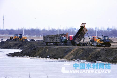 青銅峽市水務(wù)局組織多臺大型機械封堵岔河