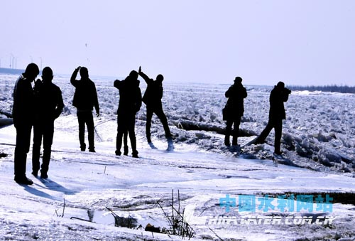 由于封河造成水位抬高之后,黃河萎縮的河道和水流比常態(tài)下增加了許多。舉目遠(yuǎn)望,雄偉、壯觀的大河橫臥在寧夏平原,標(biāo)準(zhǔn)化堤防遙遙相對(duì),縱貫黃河兩岸,大大拉近了城市與河的距離,拉近了人與河的距離。黃河的雄壯、輕柔、婉約、含蓄之美在高原凈光的照射下,美輪美奐,無(wú)與倫比。偶爾,休閑的市民們漫步河邊,采擷千里冰封的黃河美景,找尋人與自然的美妙和諧。