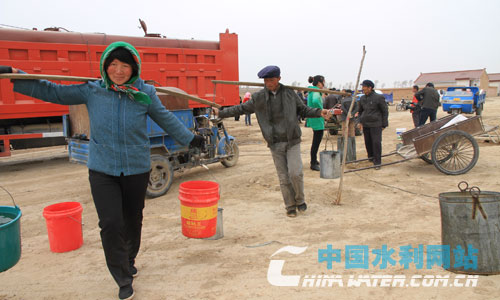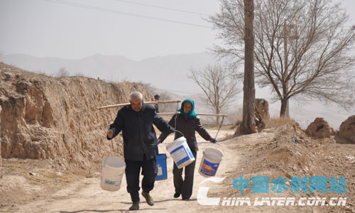 筆者隨從鹽環(huán)定揚水管理處相關(guān)領(lǐng)導,深入甘肅環(huán)縣實地踏訪。“縣政府為每家每戶發(fā)放一個大水桶,村民們每天一大早就到這排隊拉水,當?shù)卣苍诟鞔逶O立集中供水點,方便群眾取水。”環(huán)縣自來水公司經(jīng)理這樣告訴筆者。