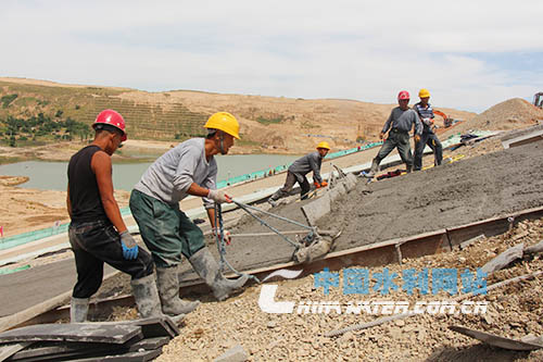 中莊水庫壩體澆筑砌護正在抓緊施工