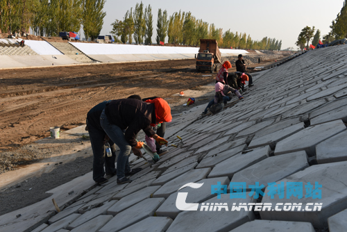 唐徠渠楊顯段渠道護坡方磚鋪整