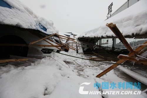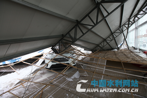 平邑縣一家汽車銷售店在11月24日被暴雪壓塌