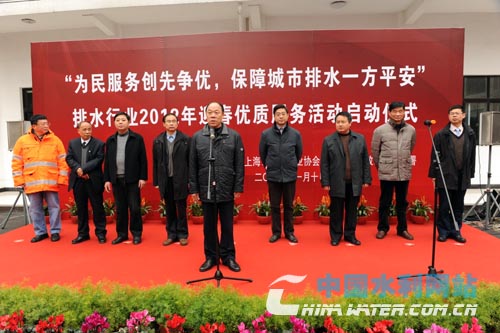 中國(guó)水利網(wǎng)站訊  1月10日,上海排水行業(yè)在普陀區(qū)隆重召開(kāi)了“為民服務(wù)創(chuàng)先爭(zhēng)優(yōu),保障城市排水一方平安”迎春優(yōu)質(zhì)服務(wù)活動(dòng)啟動(dòng)儀式,由排水行業(yè)勞動(dòng)模范、服務(wù)明星、黨員和排水業(yè)務(wù)能手領(lǐng)銜的全市排水企業(yè)和18個(gè)區(qū)縣的100支排水志愿者服務(wù)隊(duì)的3000多名隊(duì)員再次集結(jié),從即日起開(kāi)展“百團(tuán)會(huì)戰(zhàn)”,深入本市各區(qū)縣服務(wù)范圍內(nèi)排水困難的居民小區(qū)和單位,幫助疏通下水道,檢修地下車庫(kù)排水設(shè)備,協(xié)助物業(yè)解決小區(qū)積水、污水冒溢等急難愁問(wèn)題,為全市人民過(guò)一個(gè)平安、干凈、祥和的春節(jié)保駕護(hù)航。市水務(wù)局巡視員陳伯深出席儀式并為志愿者隊(duì)伍授旗,市文明辦、普陀區(qū)等有關(guān)領(lǐng)導(dǎo)出席儀式。