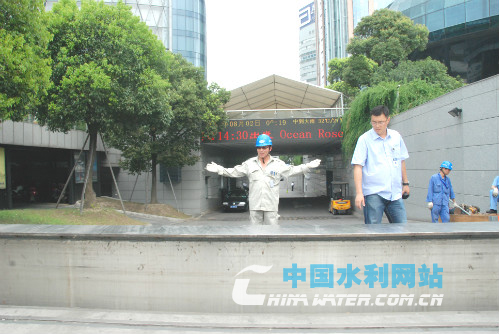 上海市國(guó)客中心防汛人員調(diào)試黃浦江防汛墻閘門(mén),為防汛做好充分準(zhǔn)備