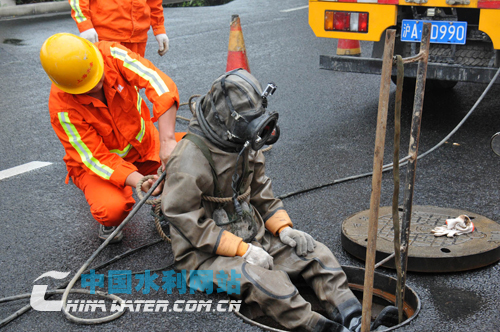 中國水利網(wǎng)站9月15日訊 (記者 歐陽田軍)今年8月下旬,上海的一場暴雨,讓虹橋地區(qū)成“澤國”。近日,排水“蛙人”倪漢城和同事出現(xiàn)在虹橋樞紐站附近的申昆路上,繼續(xù)對該地區(qū)的雨水管道進行清淤。在伙伴的協(xié)助下,倪師傅迅速穿好“潛水服”鉆下窨井。短短十分鐘內,徒手清理出5大袋約200斤的淤泥。