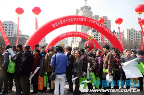 在宣傳現(xiàn)場(chǎng),西安郵電學(xué)院師生組成的志愿者不斷向過(guò)往的行人散發(fā)節(jié)水宣傳單,并舉行了隆重的宣誓儀式,決心從現(xiàn)在做起,從點(diǎn)滴做起,珍惜水,節(jié)約水,保護(hù)水。陜西省漁業(yè)局在現(xiàn)場(chǎng)向過(guò)往市民發(fā)放觀賞金魚(yú),喚醒廣大民眾保護(hù)漁業(yè)資源。與此同時(shí),陜西省積極參加水利部在北京舉辦的“世界水日”“中國(guó)水周”紀(jì)念宣傳活動(dòng),選派優(yōu)秀文藝節(jié)目參加了水利部組織的《水利“六五”普法啟動(dòng)儀式暨水利法制宣傳文藝會(huì)演》活動(dòng),一曲“天下黃河九十九道彎”贏得了水利部領(lǐng)導(dǎo)和普通觀眾的好評(píng)。