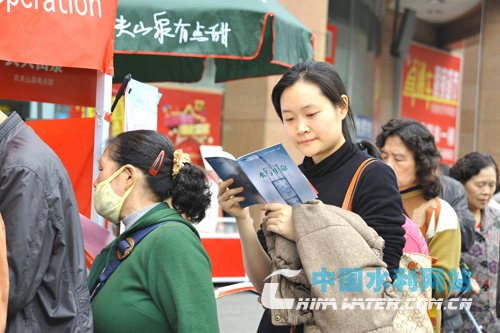 上午10時(shí),記者隨四川省水利廳副廳長(zhǎng)張強(qiáng)言等領(lǐng)導(dǎo)來(lái)到成都市草市街的世界水日、中國(guó)水周現(xiàn)場(chǎng)宣傳點(diǎn),只見宣傳點(diǎn)前踴躍前來(lái)參加活動(dòng)的人群已排起了長(zhǎng)龍。省水利廳政策法規(guī)處負(fù)責(zé)人告訴記者,由省水利廳主辦的宣傳點(diǎn)在成都仁厚街、雙元街、一環(huán)路等地還有三個(gè)。每個(gè)點(diǎn)除了接受群眾對(duì)水資源保護(hù)、水土保持、水產(chǎn)養(yǎng)殖、小農(nóng)水建設(shè)等相關(guān)情況的現(xiàn)場(chǎng)咨詢,負(fù)責(zé)發(fā)放相關(guān)宣傳資料外,還通過(guò)工作人員與群眾互動(dòng)問答的形式,向參與群眾免費(fèi)發(fā)放了2000余個(gè)印有節(jié)水宣傳標(biāo)語(yǔ)的購(gòu)物袋和數(shù)十件節(jié)水企業(yè)贊助的礦泉水等小禮品,受到了廣大群眾的普遍歡迎和好評(píng),收到了明顯的宣傳效果。