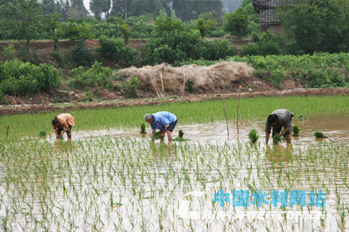 三臺(tái)縣都江堰人民渠灌區(qū)部分田塊開(kāi)始插秧苗