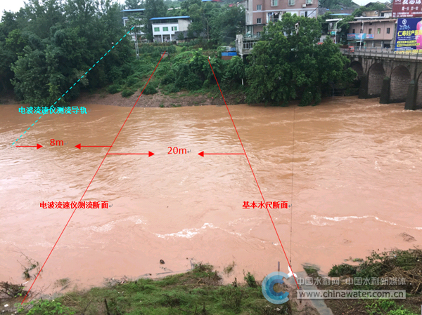 自驅(qū)式軌道雷達(dá)波測流儀斷面與基本水尺斷面方位圖  (眉山水文水資源勘測中心供圖)