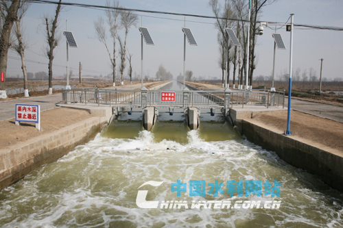 東干二號(hào)半閘太陽(yáng)能自動(dòng)化控閘門(mén)放水
