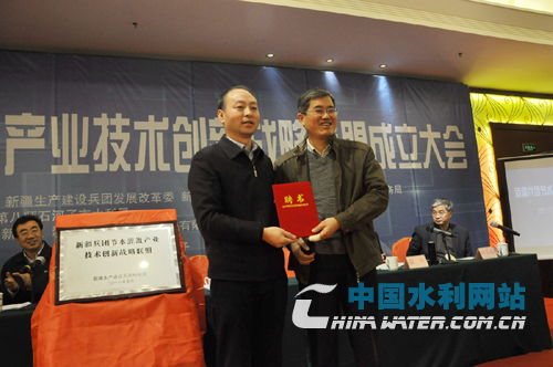 中國(guó)水利網(wǎng)站11月3日訊  10月29日至30日,全國(guó)首個(gè)節(jié)水戰(zhàn)略聯(lián)盟——兵團(tuán)節(jié)水灌溉產(chǎn)業(yè)技術(shù)創(chuàng)新戰(zhàn)略聯(lián)盟在石河子賓館正式宣布成立。中國(guó)農(nóng)業(yè)大學(xué)康紹忠、新疆農(nóng)墾科學(xué)院陳學(xué)庚兩位中國(guó)工程院院士受聘為首屆專家委員會(huì)名譽(yù)主任;新疆農(nóng)墾科學(xué)院尹飛虎研究員受聘為聯(lián)盟專委會(huì)主任。